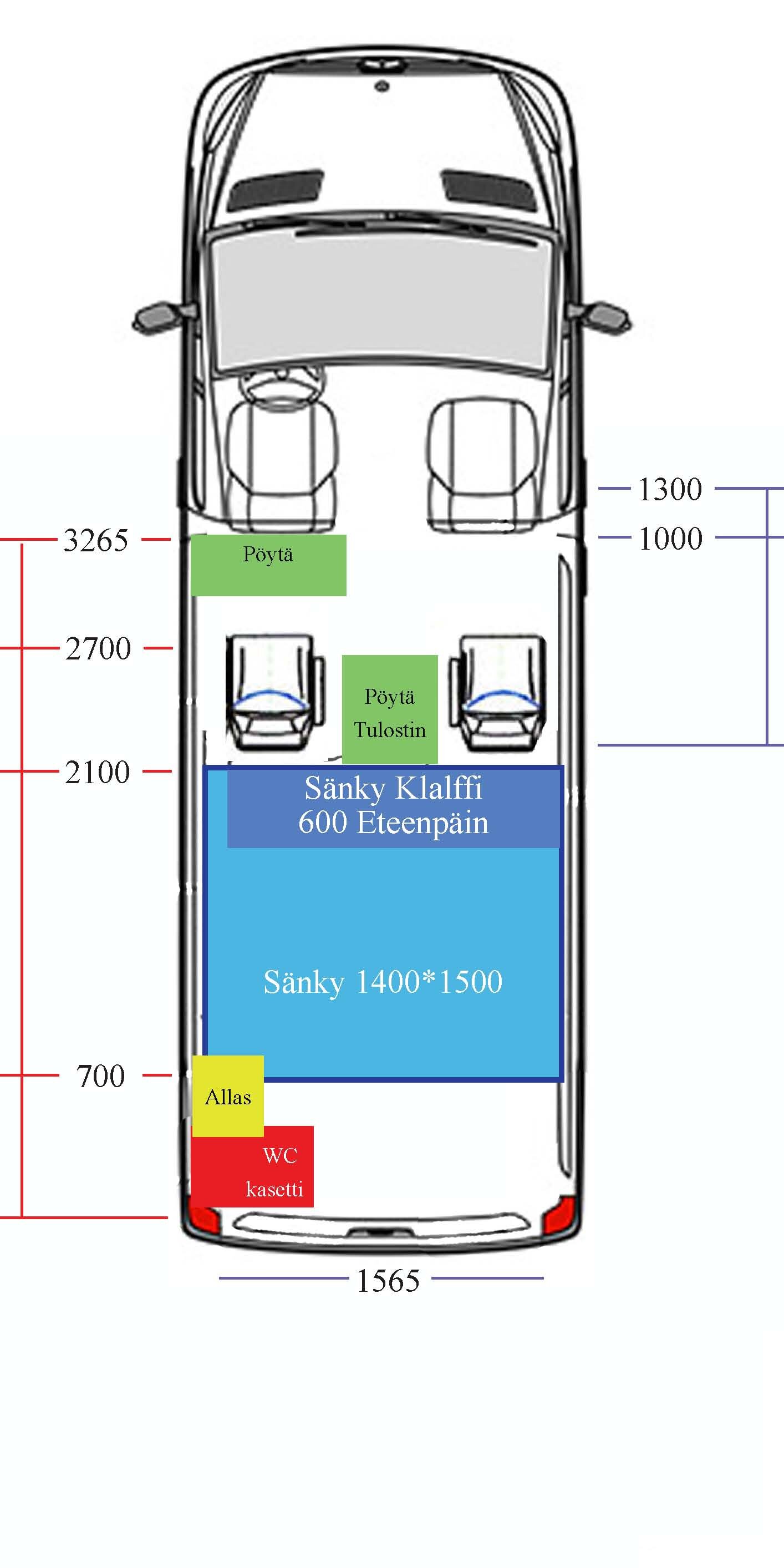 Valitse käyttötarkoituksesi mukaan, joko 140cm, tai 60cm pitkä ja aina 150cm leveä sänkymoduuli. Jatkopalan sijoittelulla voit määrittää levitätkö sängyn jatko-ohjaamon puolelle, jolloin tila näkyy tavaratilassa hyllynä, vai tavaratilan suuntaan, jolloin sinulla on aina heti valmis punkka käytettävissä.