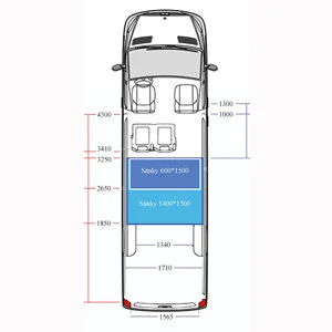 Matkailuauto lainsäädännön vaatimasta 1,3 metrin käytäväpituudesta huolimatta, 6T Vans sisusta L3H2 / 7 metrin alustassa mahdollistaa, esim. tilavan, perinteisen neljän penkin jatko-ohjaamotilan ja moottorikelkan kuljettamiseen soveltuvan kuljetustilan yhdistämisen.